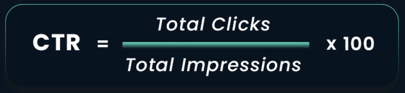 - Click-Through Rate (CTR): Tỷ lệ nhấp chuột (CTR) là tỷ lệ giữa số lần nhấp và số lần hiển thị của quảng cáo. Ví dụ: Nếu quảng cáo của bạn có 100 lần hiển thị và chỉ một người mua nhấp vào, CTR sẽ là (1/100)*100 = 1%.