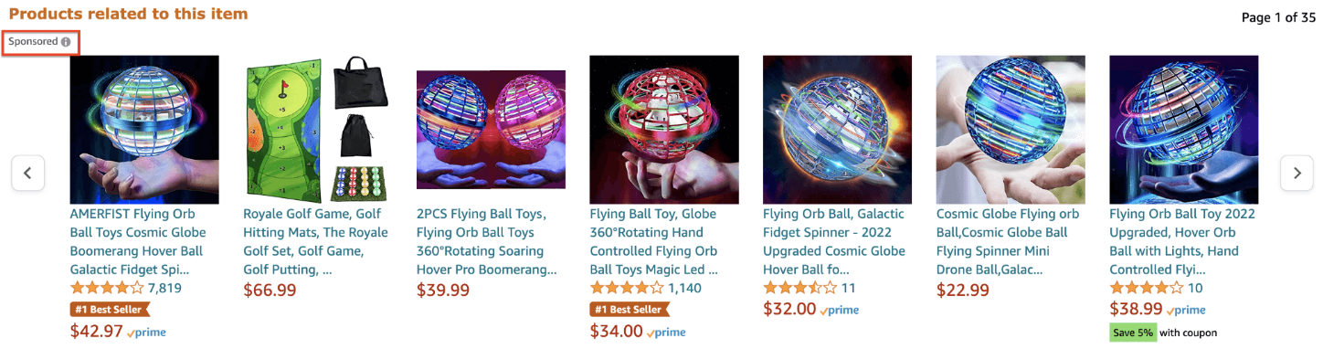 Bạn có thể thấy một thẻ “Sponsored” nhỏ trên các sản phẩm. Đây đều là quảng cáo Sponsored Product.