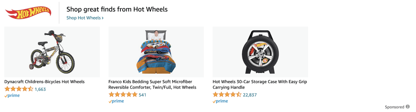 Các quảng cáo này thường xuất hiện ở đầu, bên cạnh và dưới cùng của kết quả tìm kiếm Amazon, bao gồm logo thương hiệu, khẩu hiệu và một vài sản phẩm từ thương hiệu.