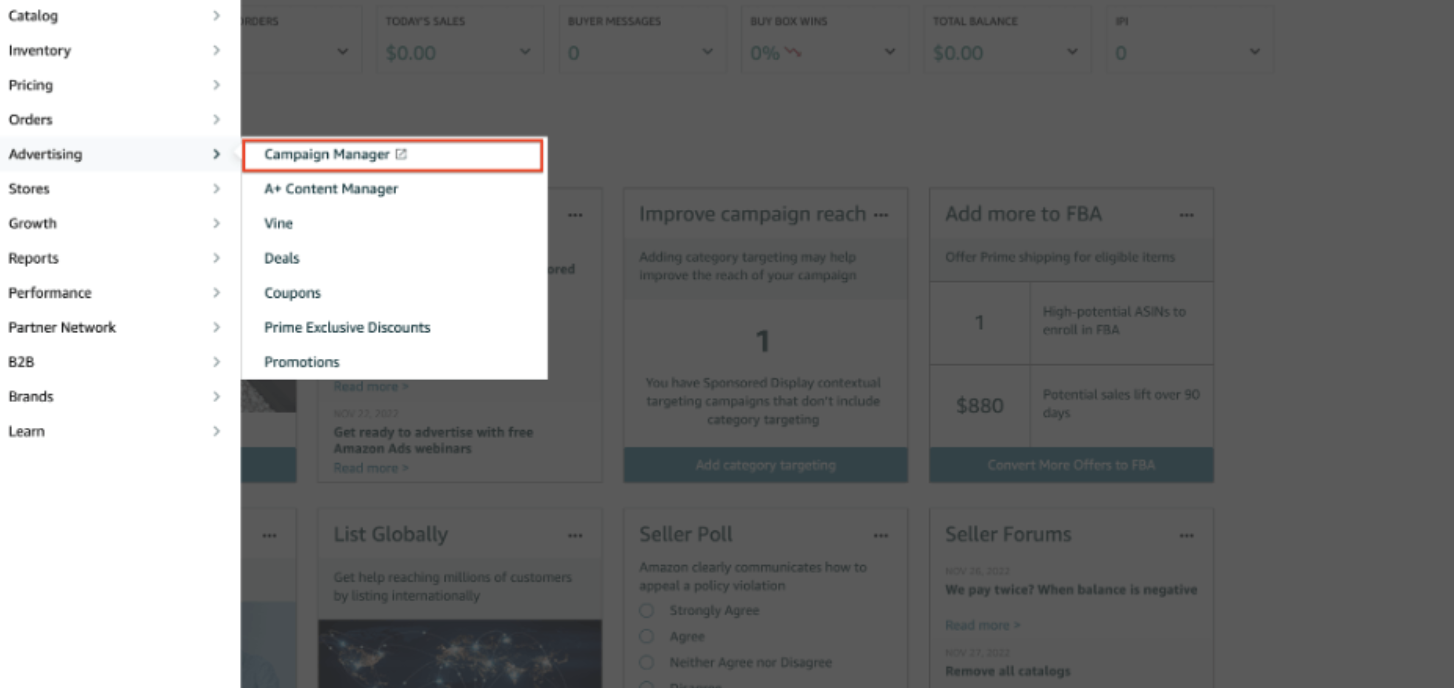 - Truy cập Measurements & Reporting → Sponsored Ads Reports