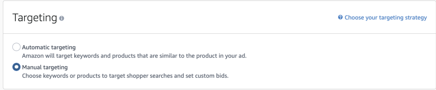 Khi tạo quảng cáo Sponsored Product, người bán có thể sử dụng hai loại tùy chọn nhắm mục tiêu: