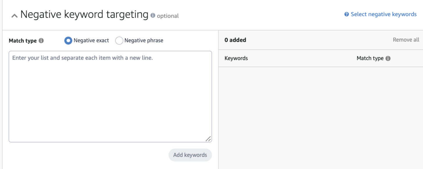 Nếu bạn không muốn quảng cáo của mình hiển thị trên Amazon cho một số từ khóa hoặc cụm từ không liên quan, bạn có thể thêm chúng làm từ khóa phủ định.