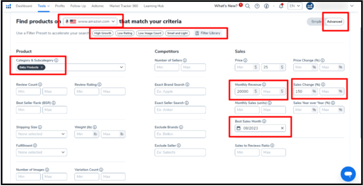 8. Ngoài ra, bạn có thể chọn bộ lọc cài sẵn “High Growth” để tìm các sản phẩm có doanh số tăng trưởng nhanh.