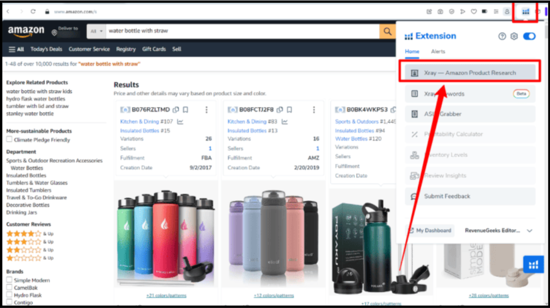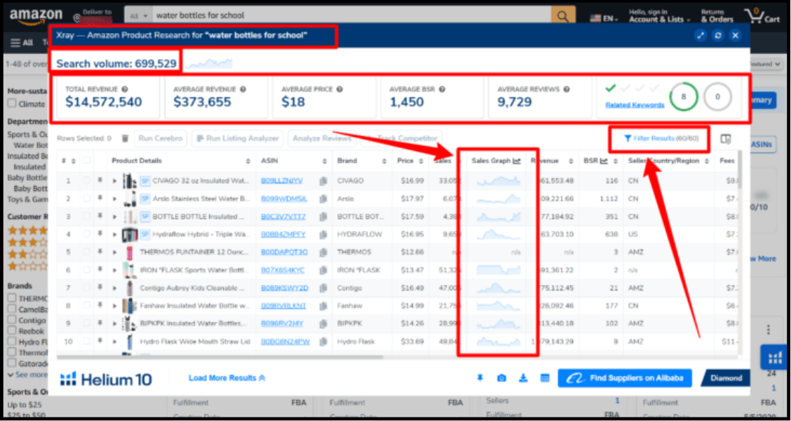 Xray hoạt động với tiện ích mở rộng Chrome của Helium 10 để cung cấp thông tin chi tiết về sản phẩm trên các trang kết quả tìm kiếm của Amazon. Với một vài điều chỉnh, bạn có thể tìm thấy các sản phẩm xu hướng với Xray. Dưới đây là cách thực hiện: