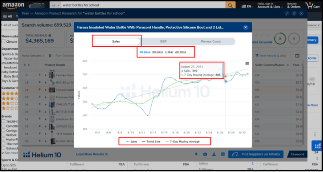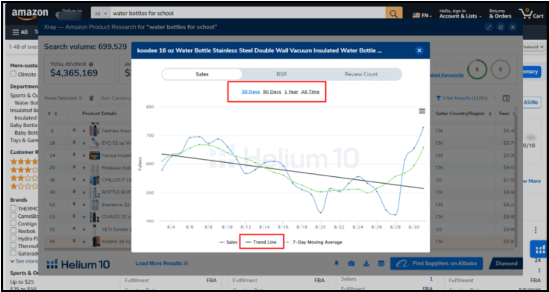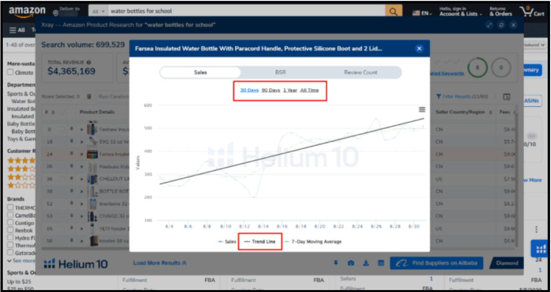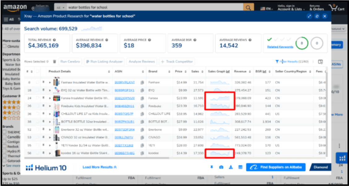 Tìm Sản phẩm xu hướng không hề khó khăn, với Helium 10 giúp bạn tìm kiếm các sản phẩm theo mùa và sản phẩm bán quanh năm để kinh doanh trong cửa hàng Amazon FBA của bạn. Nó cũng giúp xác định lợi nhuận, phí lưu kho và liên hệ nhà cung cấp của các sản phẩm đó.
