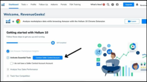 Đầu tiên, bạn cần kết nối tài khoản Amazon Seller với Helium 10. Quá trình này rất đơn giản: