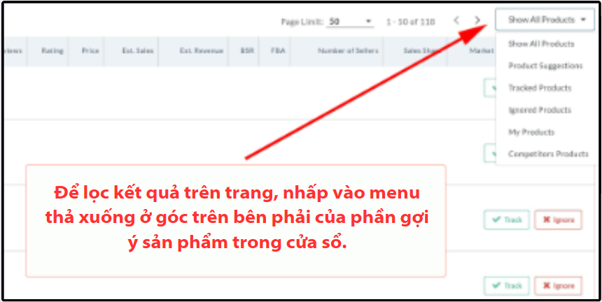 14. Nếu sau này bạn nhận ra rằng bạn không muốn bỏ qua một ASIN, bạn có thể thay đổi ý định và thêm lại sản phẩm vào cơ sở dữ liệu theo dõi. Để tìm nó, hãy đặt bộ lọc trang để hiển thị tất cả Ignored Products.