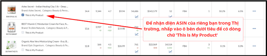 Helium 10 Market Tracker cung cấp thông tin chi tiết cho từng ASIN, bao gồm: