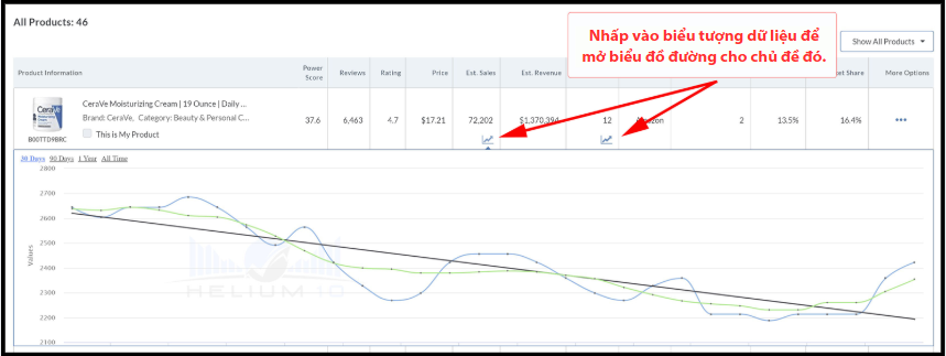6. Phân Tích Sâu Về Sản Phẩm: Với mỗi sản phẩm trong thị trường, Helium 10 Market Tracker hiển thị: