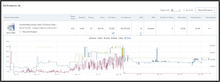 Công cụ này hiển thị mọi thông tin dưới dạng biểu đồ đa dạng. Hơn nữa, bạn còn có thể thêm sản phẩm của mình vào biểu đồ. Điều này giúp bạn so sánh thị phần của mình với các sản phẩm khác một cách dễ dàng.