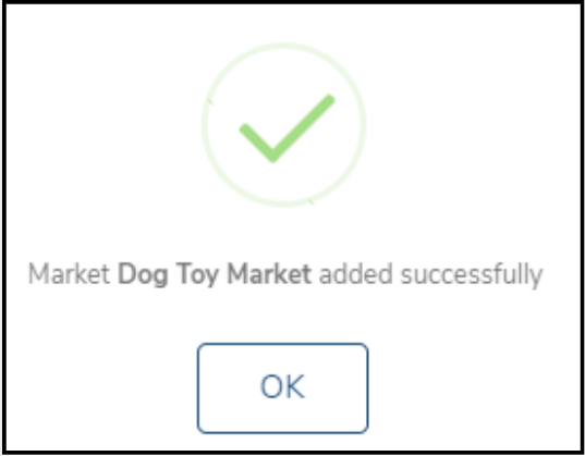 5. Sau khi điền xong, nhấn nút Create Market màu xanh ở góc dưới bên trái. Một thông báo xác nhận sẽ xuất hiện.