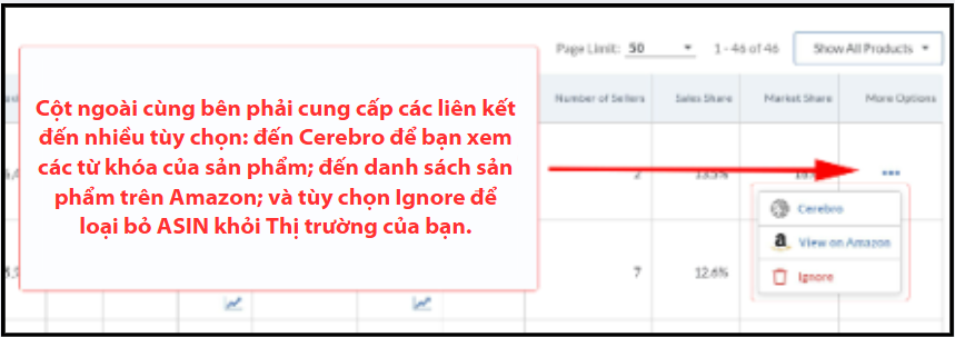 12. Cột cuối cùng chứa các liên kết giúp bạn mở rộng nghiên cứu về sản phẩm một cách nhanh chóng. Bạn có thể: