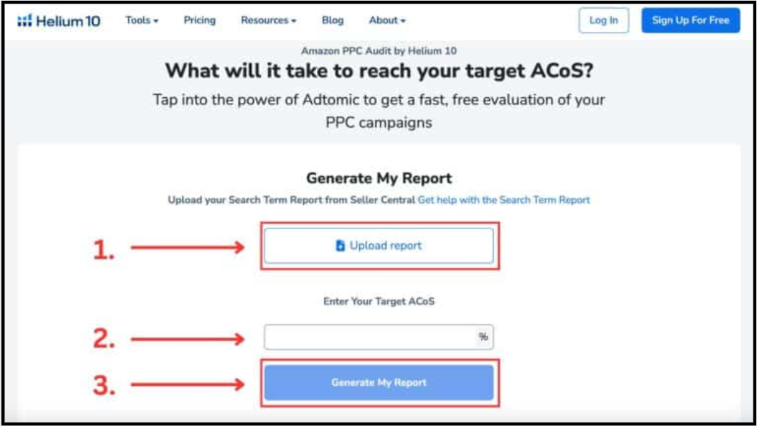 Sau khi đã tải xuống báo cáo tìm kiếm, tiếp theo bạn sẽ tạo báo cáo PPC Audit trên Helium 10 bằng cách: